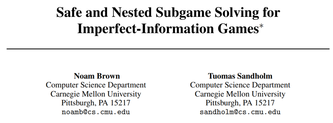 不可不提的是,同样在2017年 ,Noam Brown及其导师获得了