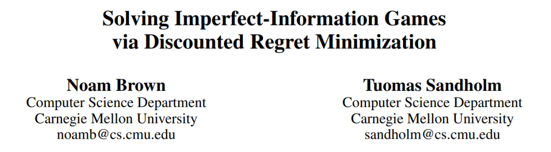 这是一种在两人零和博弈中收敛到纳什均衡的迭代算法。我们描述了CFR的新变体,它使用折扣原则(discounting)来显著加快收敛速度。