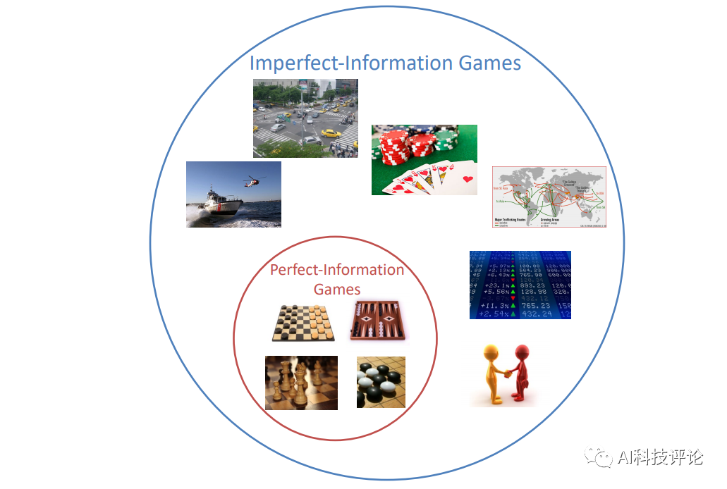 相反,扑克牌是不完美信息博弈:博弈状态的一些信息是隐藏的,即博弈中存在包含多个决策点的信息集或博弈者无法预测对手的一些行动。