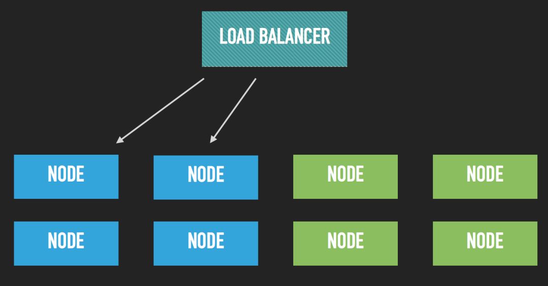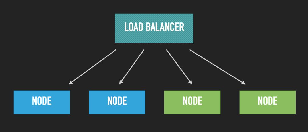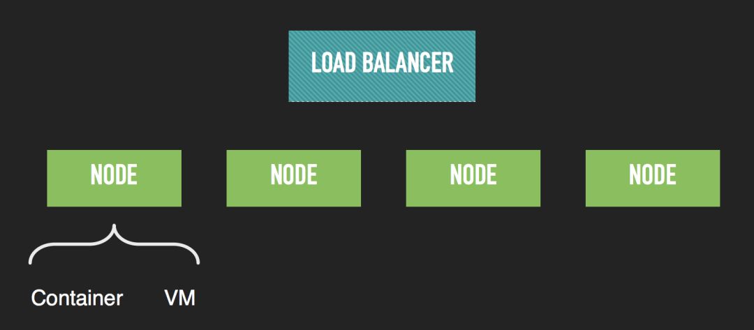 上层是一个负载均衡器(load balancer),下层是多个相同的节点(node)。