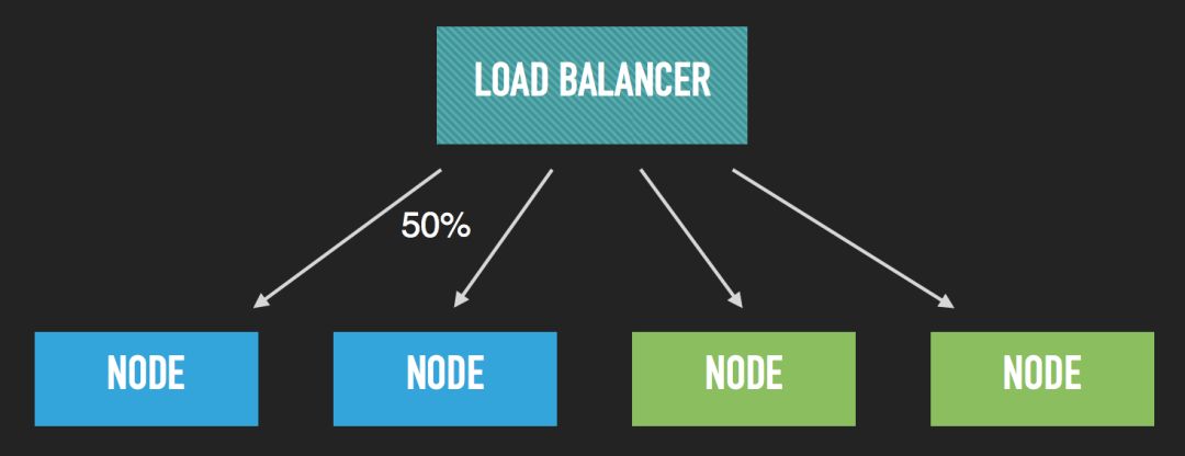 再更新第二个节点,并将包含之前那 20% 的用户的 50% 的用户的请求转发到两个更新过的节点上去。