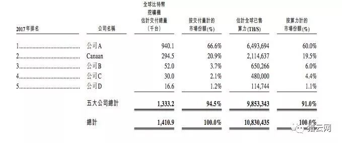 据招股书显示,嘉楠耘智2017年排名全球第二,算力占19.5%。