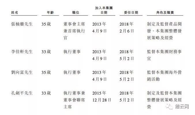 嘉楠耘智创始人、北京航空航天大学计算机专业博士张楠赓,又称为“南瓜张”,35岁,持有17.6%的股权。李佳轩,33岁,为公司首席财务官,持有17.2006%的股权,李佳轩曾在中星微电子任IC工程师。刘向富,35岁,持有17.6103%股权,孔剑平,33岁,持有7.8513%股权。四位自然人股东均是“80后”,其中最年轻的出生于1985年。