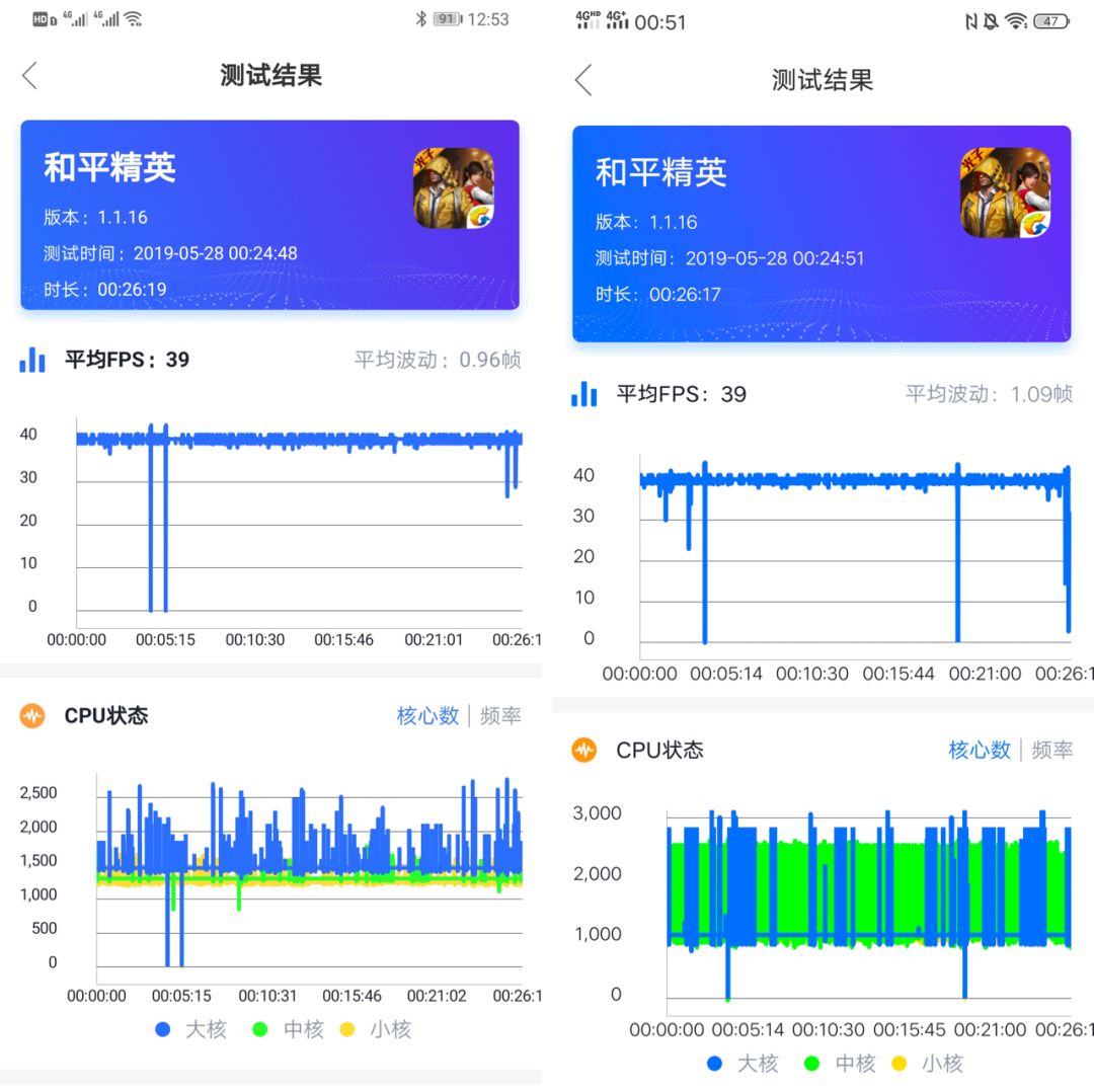 每次测试时间为 25 分钟,两台机器的平均帧率均为 60fps。如下图所示,在实际的游戏过程中,P30 Pro 基本稳定在 60fps,没有肉眼可见的掉帧现象,「驾驶」体验十分流畅。