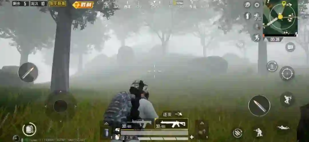 这里的测试方案是,P30 Pro 和另一台手机进行双排,由 P30 Pro 全程进行实际操作;另一台手机在跳伞后立马溺水淘汰并进入观战模式。此时两台手机上显示的画面,将完全同步。