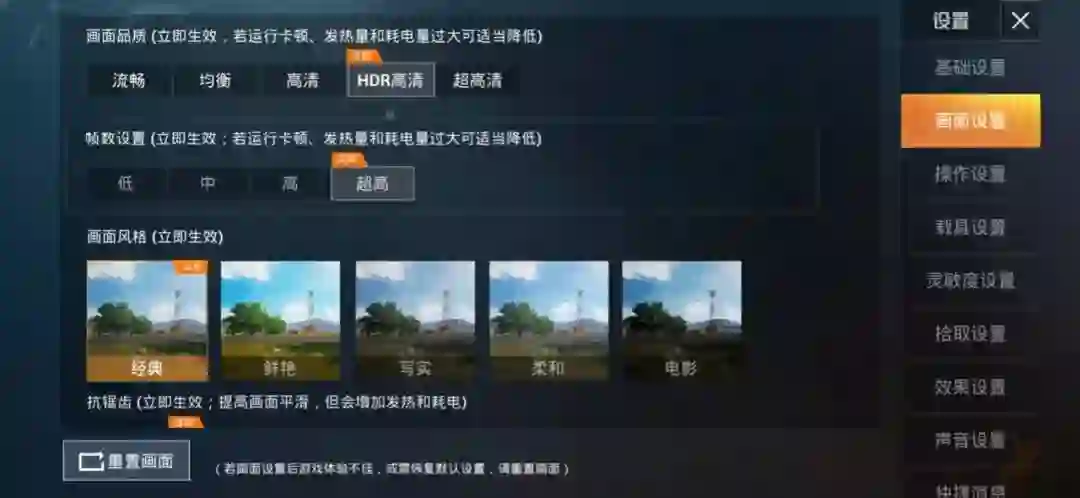 虽然名字变了,但配方还是过去的那个配方,两台手机都选择了目前开放的最高画质、超高帧率,并开启了阴影和抗锯齿,为了避免画质波动影响测试,我们这里关闭了流畅自适应。