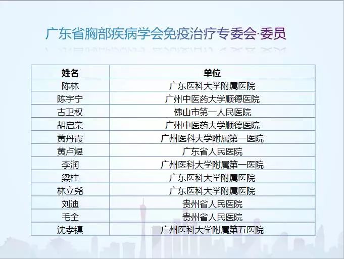 免疫治疗是当今学术界最重要的热点,近年来免疫治疗手段推陈出新,将很多既往极为棘手的疾病尤其是癌症的治疗效果大大提高,但同时也引发很多未知的问题。在广东省胸部疾病学会会长何建行教授大力支持下,广东省胸部疾病学会免疫治疗专业委员会应运而生,其指导思想是,崭新的领域更需要新生的力量,在众多领军人物的指导下,召集学界中坚骨干力量,以组织化的平台共同探讨免疫治疗的临床实践,研发前沿技术,推动免疫治疗领域的进步。