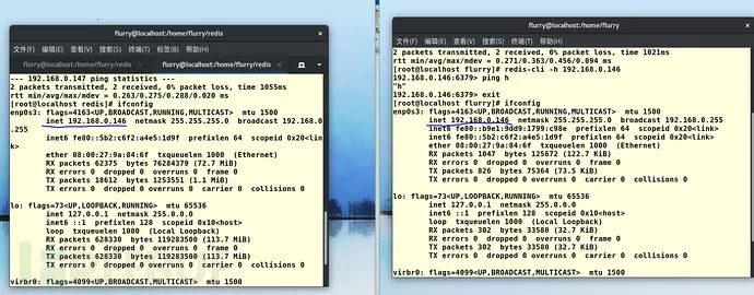 如果ip一样,则修改一台虚拟机ip,我修改了右侧虚拟机ip为192.168.0.147: