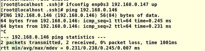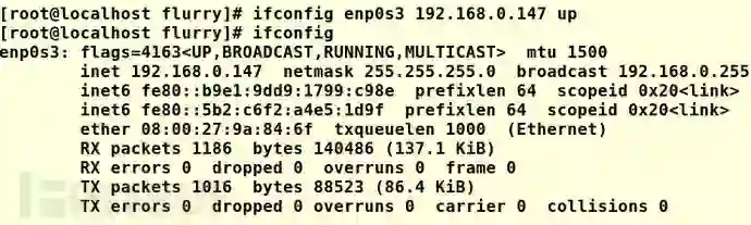 (6)ping一下目标主机ip确定能通,若不能则再运行一遍ifconfig enp0s3 192.168.0.147 up命令,我的可以ping通: