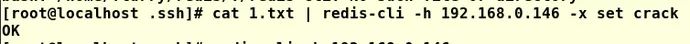 (7)将1.txt写入redis(使用redis-cli -h ip命令连接主机A,将文件写入):