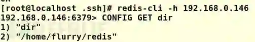 (8)远程登录主机A的redis服务:redis-cli -h 192.168.0.146 并使用CONFIG GET dir命令得到redis备份的路径: