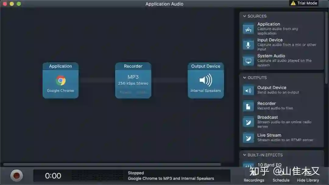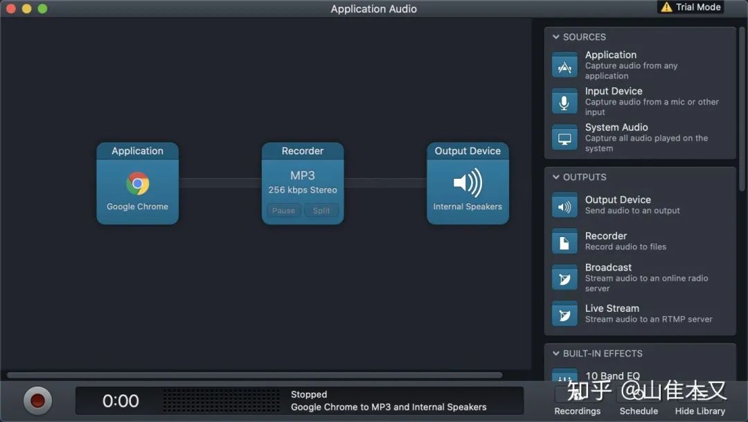 由于mac的录屏没有声音,所以这一步会用到一个工具叫作Audio Hijack,这个软件长成下面的样子,可以捕捉app的声音,选择成捕捉浏览器的声音,就可以把谷歌AI念的语音导出成mp3文件咯。