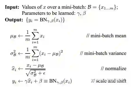 BN的具体过程(注意第三个公式中分母要加上epsilon)