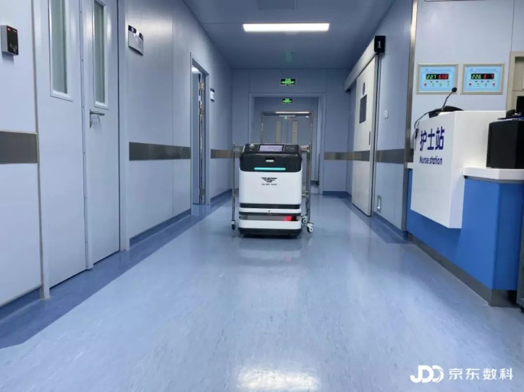 再比如,在本次疫情期间,京东数科迅速研发出了室内运送机器人,可根据地图自行规划路线自动导航,并根据实际情况主动避障,能做到物料运送过程中医护人员与高危环境零接触。这个机器人在上海某新冠确诊病例收治中心上岗,不仅有效降低了医护人员在高传染环境下暴露的风险,还节省了50%的人力成本。