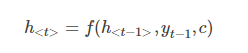 我们可以先这样来理解:在 Encoder 中我们得到了一个涵盖了整个句子信息的实数向量 c ,现在我们给 Decoder 输入一个启动信号 y0(如特殊符号<START>), 然后Decoder 根据 h<0>,y0,c ,就能够计算出 y1 的概率分布了,同理,根据 h<1>,y1,c 可以计算y2 的概率分布…以此类推直到预测到结束的特殊标志 <END>,才结束预测。