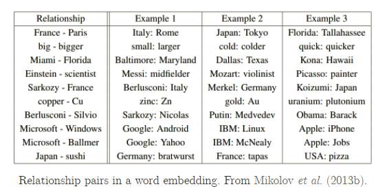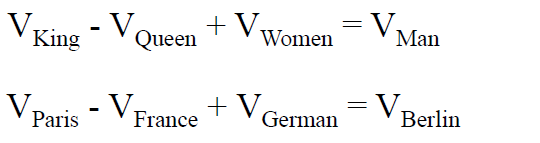 King 和 Queen 的距离,等于 Man 和 Women 的距离。Paris 和 France 的距离,等于 Berlin 和 German 的距离。