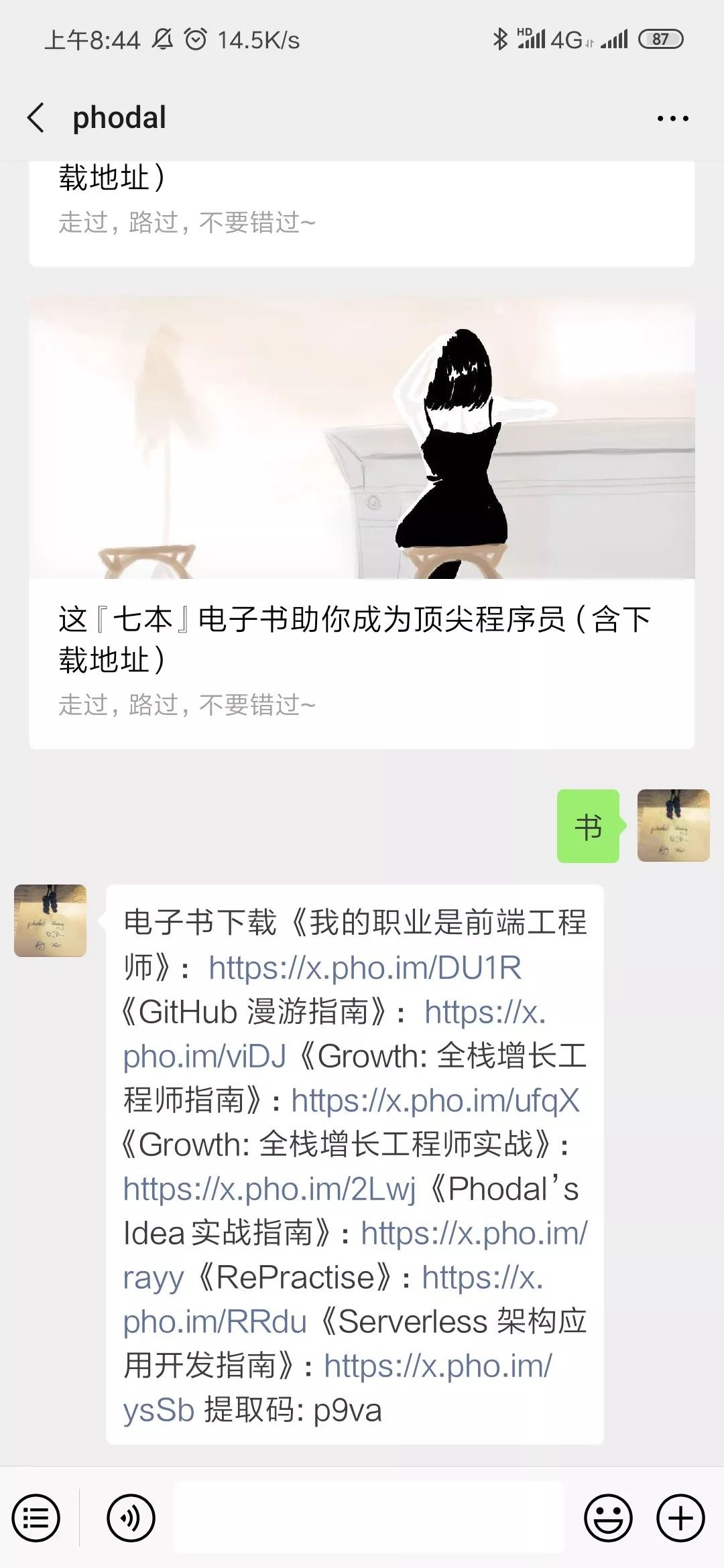 然后回复『书』或者『电子书』,即可获得下载地址。如下图所示: