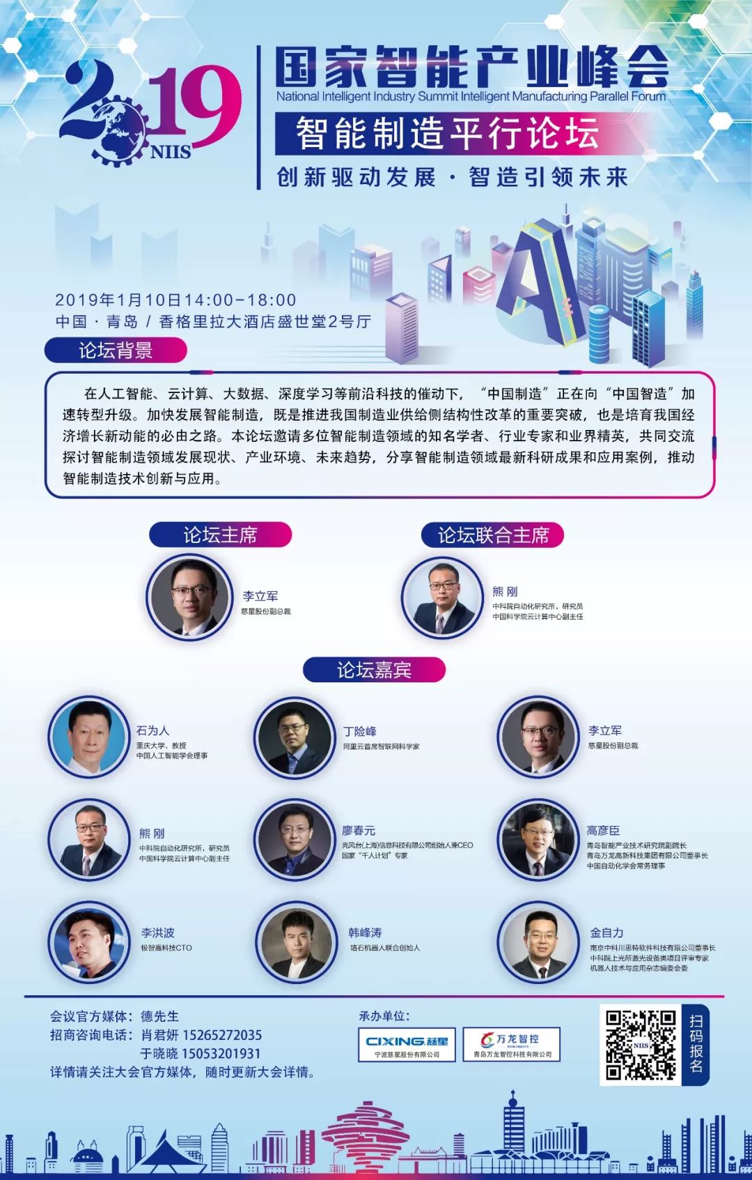 🔗【NIIS2019】创新驱动发展,智造引领未来 ——2019国家智能产业峰会智能制造平行论坛即将在青岛召开
