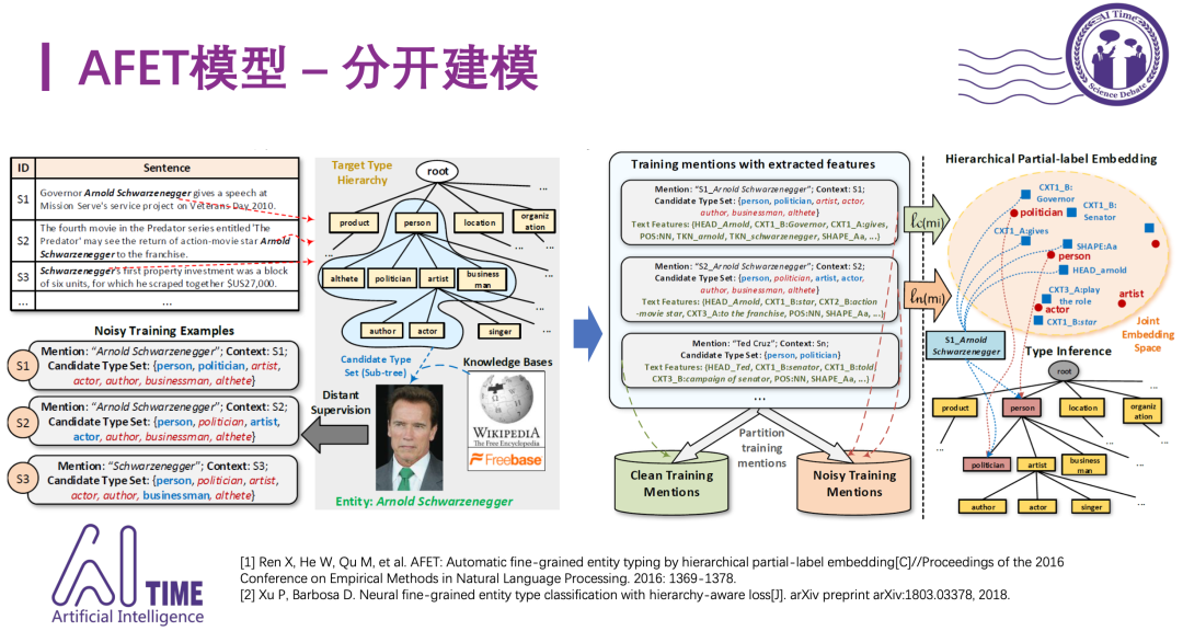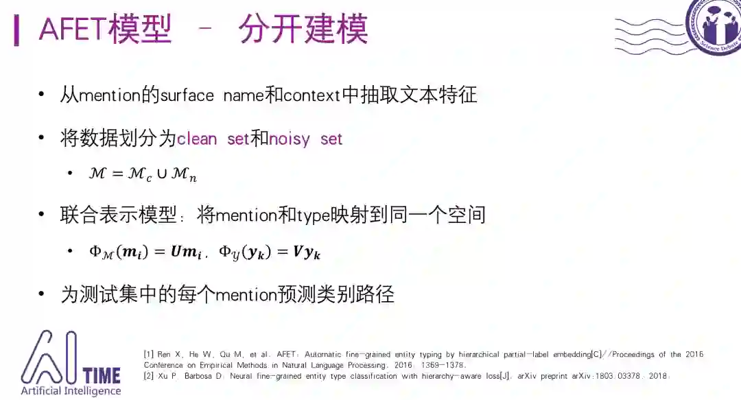 AFET模型比较早的将数据集划分成clean-set和noisy-set,针对不同的数据采用不同的处理方法,在当时取得了最好的效果。