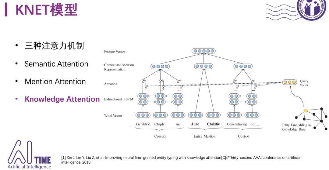 由于AttentiveNER采用了固定的attention机制,在实际应用中不够灵活。同样使用双向LSTM结构,AAAI-18的KNET模型提出使用三种注意力机制来改进: