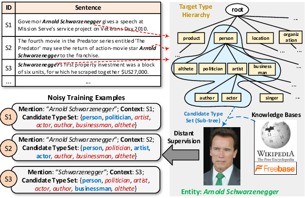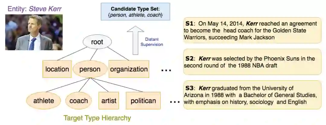 首先使用知识库做远程监督,利用实体链接工具,将某个mention链接到Freebase这样的知识库中,将知识库中的实体类别赋予这个mention。