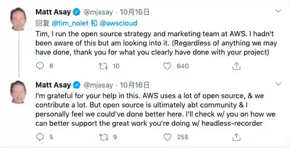 “但开源的核心终究关乎人与社区,我个人认为我们应该做得更多,承认 Tim 与其他维护者们的出色工作,努力支持他们在 Headless Recorder 项目中的成就。目前,我们正在与 Tim 就此展开沟通。”