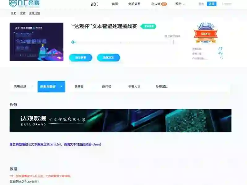 「达观杯」是由达观数据主办的全国前沿人工智能和大数据技术竞赛,始于 2017 年,依据热点人工智能技术,面向全国数百所高等院校本科及以上学生、大型科技企业和初创科技企业研发人员及各行业数据工作者、爱好者展开,意在发现更多技术人才,共同在 NLP 应用系统的开发实现突破,从而促进中国人工智能发展。