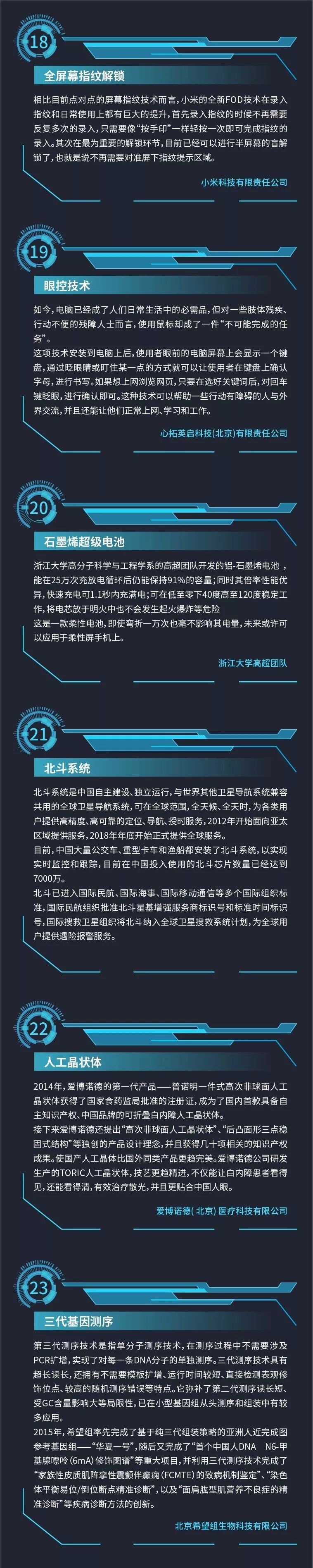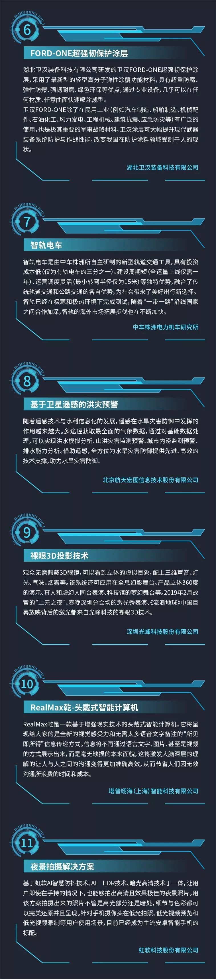 抛开数字,我们也看到越来越多的“黑科技”正在涌现,并且开始商业化。通讯、医疗、交通、国防……无论是打破国外垄断的硬核黑科技,还是有温度有社会价值的走心黑科技,都在以他们的方式实实在在地改变着中国的未来。他们是真正的”中国之光”。