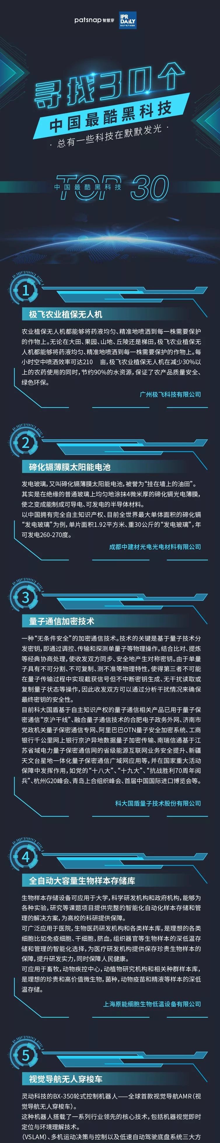 从7月18日到今天的一个多月时间里,Patsnap智慧芽和IPRdaily围绕“中国最酷黑科技”为题,通过企业自荐及用户推荐的方式,收集了数百个中国的黑科技,并通过投票的方式选出了排名前30的中国黑科技,总投票数超过了7000。