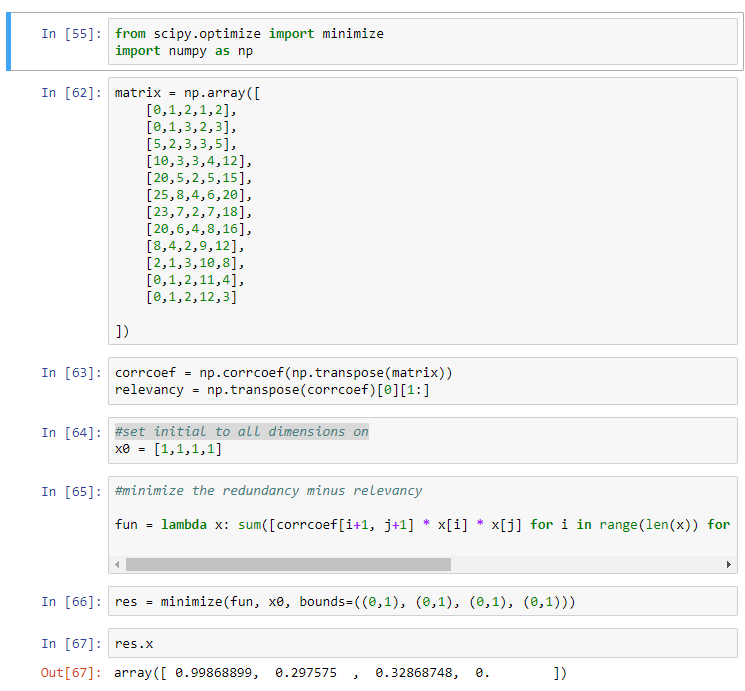 让我们用虚构的数据写一个快速脚本来实现 mRMR: