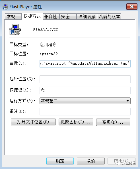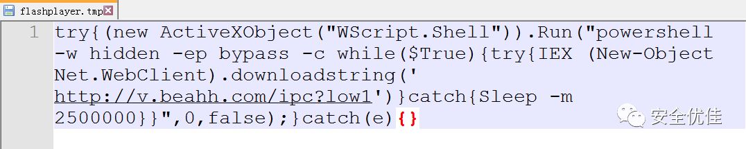 快捷方式运行之后,执行flashplayer.tmp。此文件是一个脚本,使用JS 调用PowerShell脚本下载。