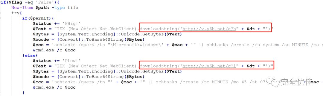 计划任务的功能是访问此网址,使用PowerShell执行获取到的内容。目前此网址处于无法访问状态,攻击者随时可以开启,下发任意脚本。