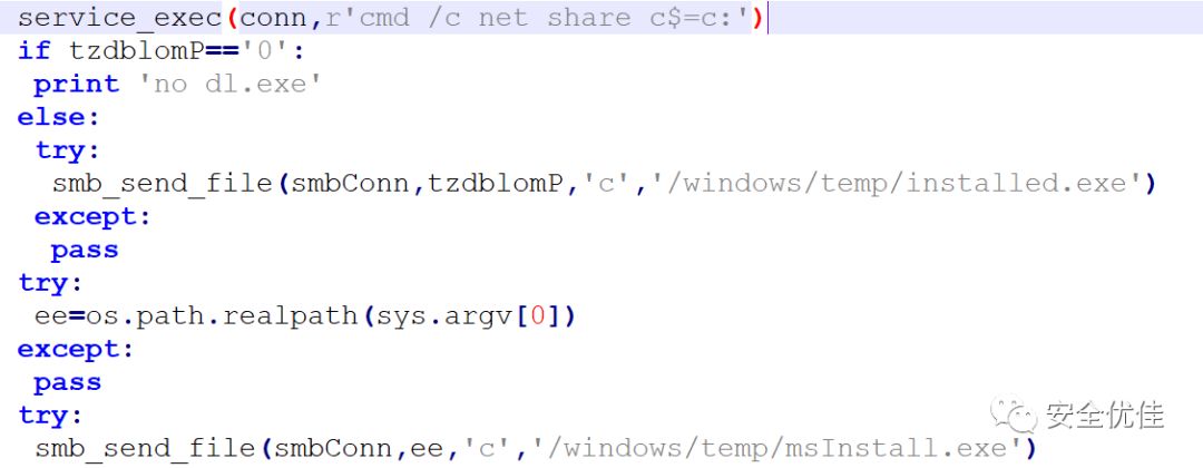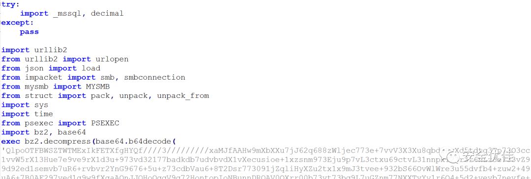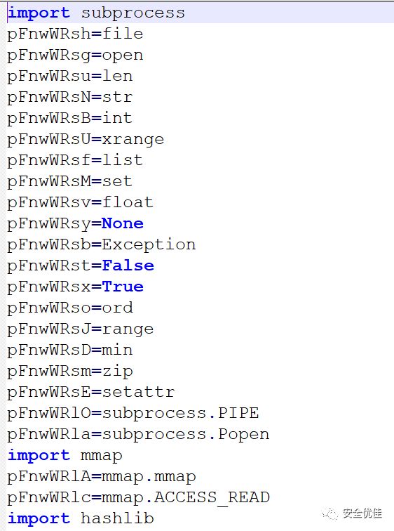 解码后得到病毒的Python代码,代码中的关键字符串也进行了混淆。