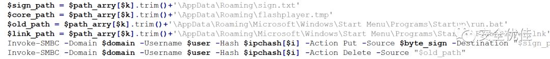 攻击成功后,调用CopyRun函数,将 FlashPlayer.lnk和flashplayer.tmp植入被攻击机器,被攻击机器又会开始新的一轮循环,下载病毒攻击其它机器。
