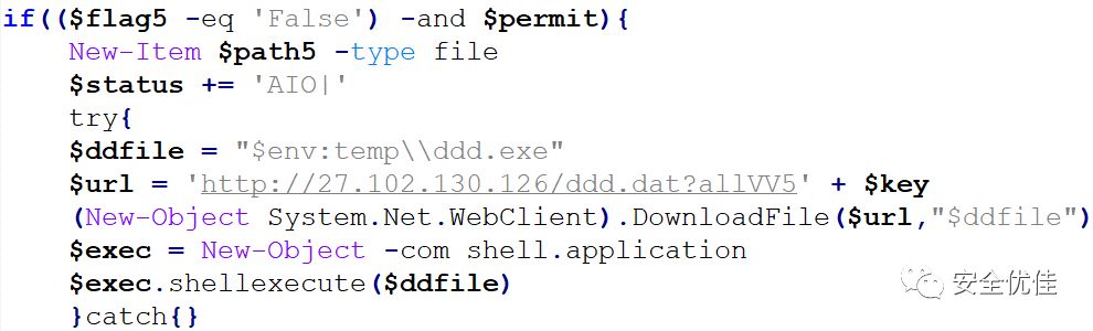 5)如果配置文件kk5.log不存在,则下载ddd.dat,命名为ddd.exe,此模块为新版挖矿模块,会下载显卡挖矿相关的驱动。