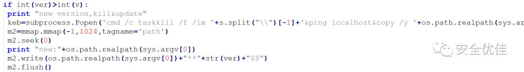 否则判断当前版本是否大于内存映射中的版本,如果大于结束之前版本的进程,当前程序复制过去。