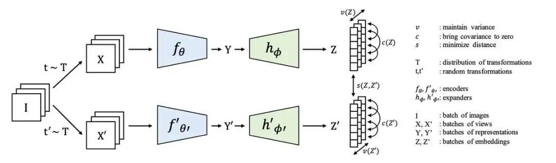最近,LeCun在两篇论文中描述了能量模型的研究现状:一篇是 LeCun 与Facebook AI 实验室(FAIR)的同事于去年夏天共同发表的“Barlow Twins”;另一篇则是他与 FAIR、Inria 合作发表于今年1月的“VICReg”。
