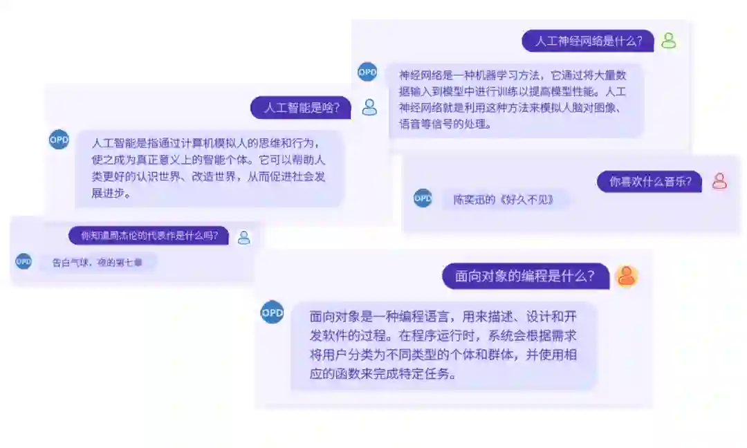 从人类反馈中学习:与人类交互是对话模型最自然的应用方式,我们也在交互实验中发现了当前版本 OPD 存在的一些缺陷。在部署 OPD 后,我们将根据 human-bot 的交互反馈,持续改进 OPD 的性能,并定期发布版本迭代,与中文对话社区分享我们最新的成果。