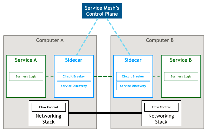 在 Service Mesh 中,负责网络通信的部分叫数据平面(data plane),负责配置管理的部分叫控制平面(control plane)。