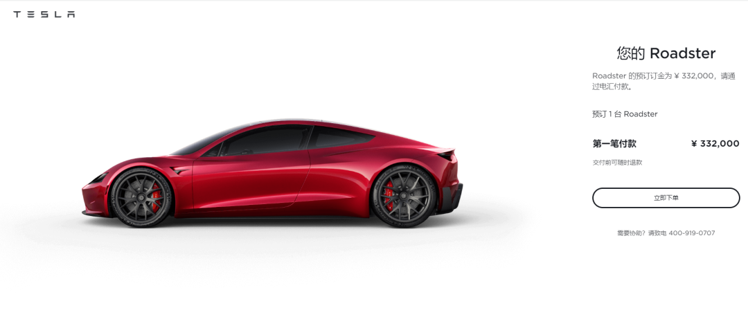 特斯拉官网显示,新一代跑车Roadster已重新开放预订,订金为人民币33.2万元。在正式签署购车协议前,双方均可以随时无理由取消预订,订金将全额退还。马斯克近日宣布该款车型将于2023年投产。(快科技)