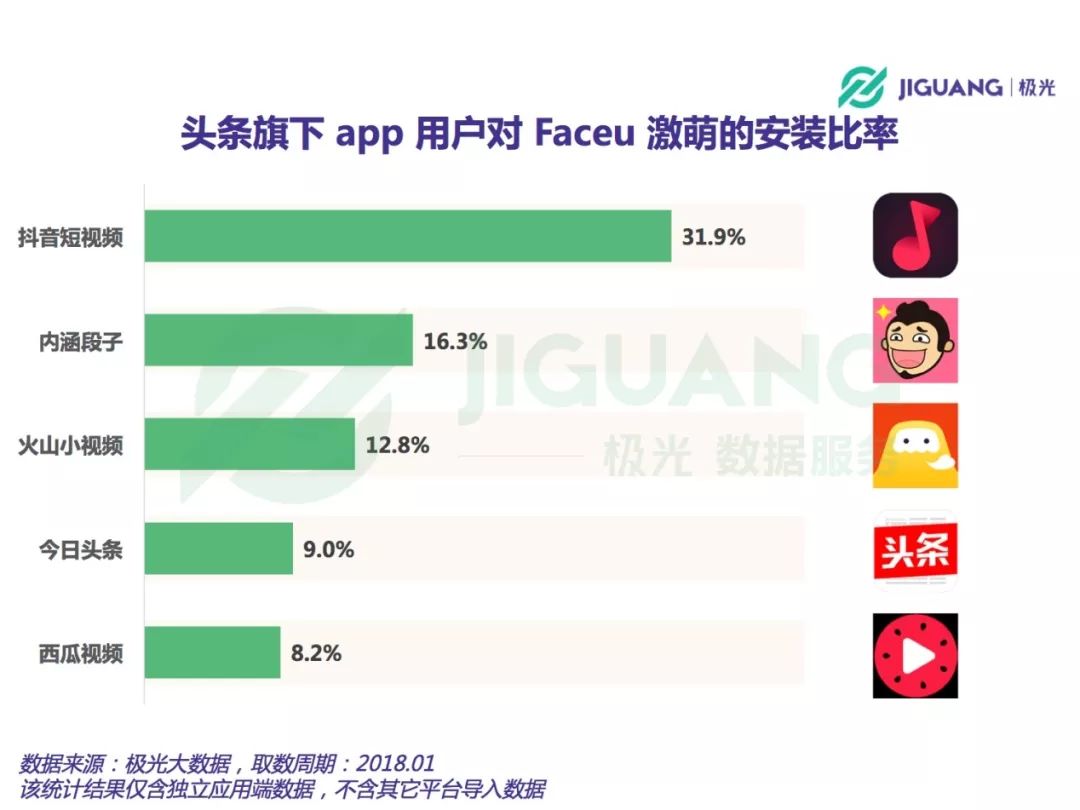 春节期间,大部分人还沉浸在节假日的喜庆氛围之中,资本的脚步却并未随之而停歇。有消息显示,今日头条已经完成了对Faceu激萌的收购,交易总价高达3亿美元。在高估值的背后,Faceu激萌到底有着怎样的数据表现?与今日头条旗下的应用又是否存在较强的协同效应呢?我们不妨借助极光大数据的监测结果来一探究竟。
