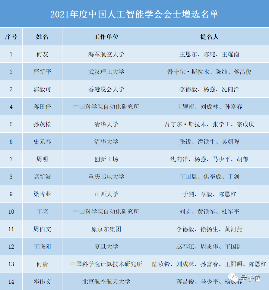 今年中国人工智能学会会士增选迎来公示,共有14人入围,获得学会的最高学术荣誉。