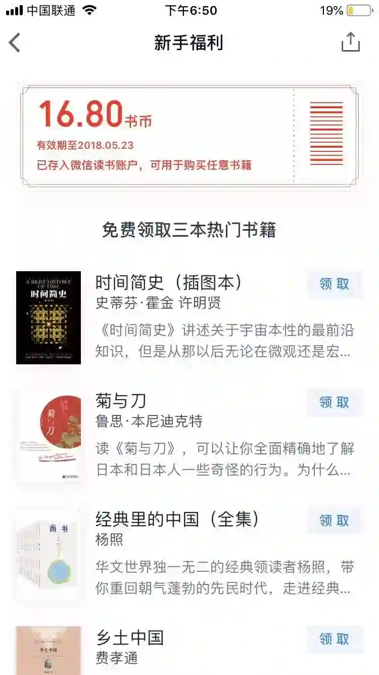 拿我自己来说,由于第一次领福利时,选到的书有自己特别感兴趣的,也确实在一些碎片化时间会打开看看。
