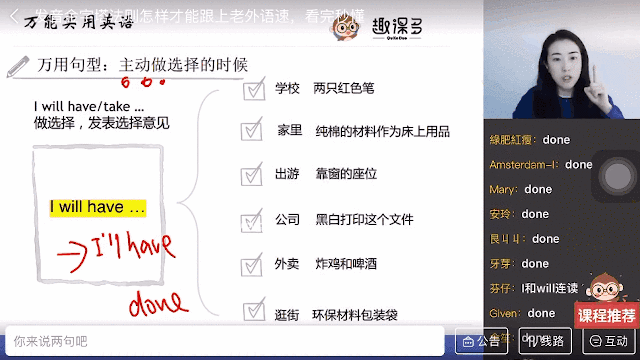 「万能实用英语——4天训练营」的直播课程中,每节课都是历经近10年的英语学习和教学结晶: