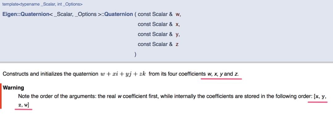 其次,单位四元素才能描述旋转,所以四元素使用前必须归一化:q.normalize()。