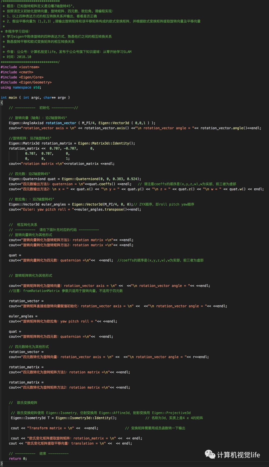 1、学习eigen中刚体旋转的四种表达方式,熟悉他们之间的相互转换关系