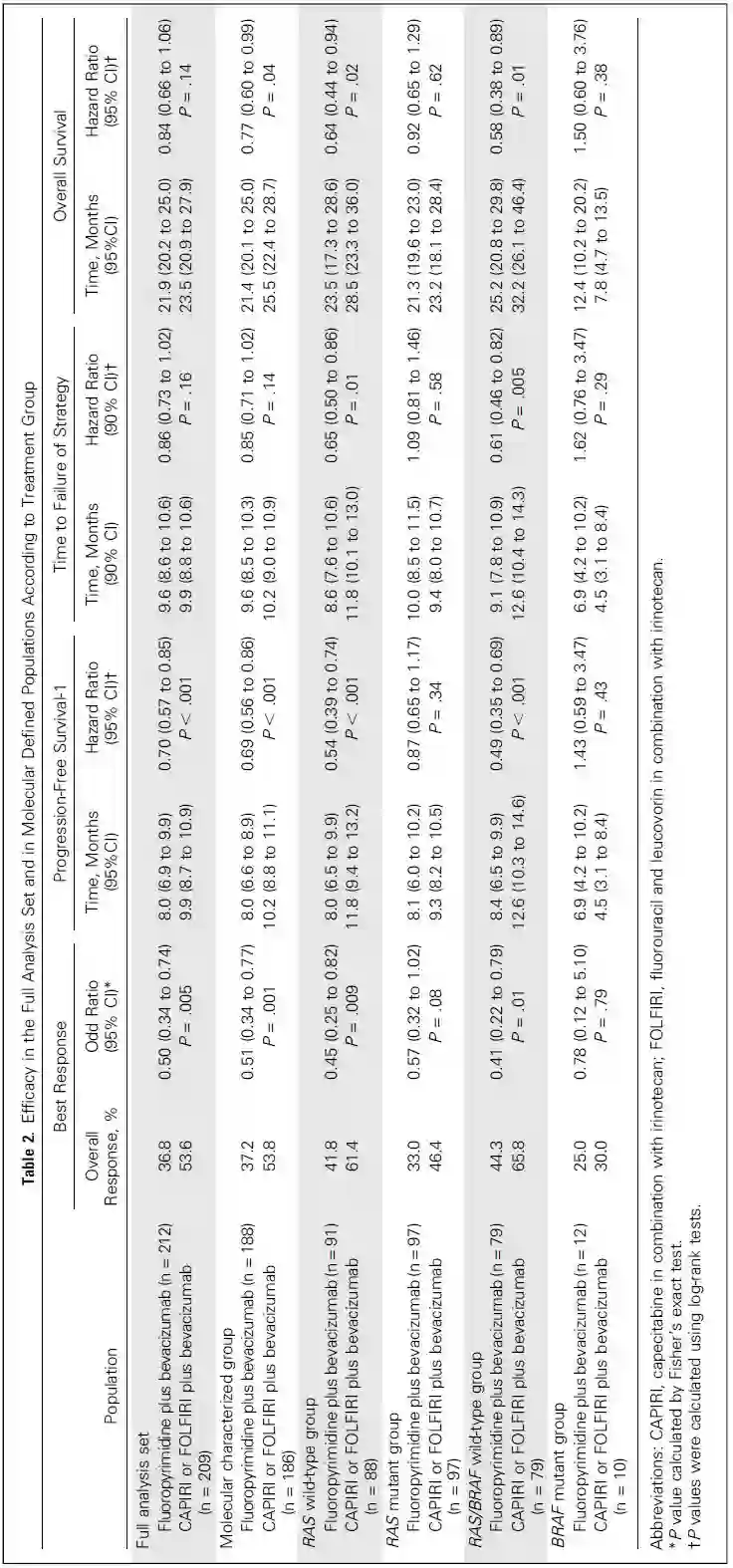 主要入组标准为:年龄≥18岁,ECOG 0~1分,IV期,组织学确诊为结直肠癌,器官功能良好,肿瘤不可切除或患者不愿手术,≥1个可测量病灶。分层因素包括:白细胞(8,000/μL vs 8,000/μL),碱性磷酸酶 (<300 U/L vs ≥300 U/L) ,先前有无辅助治疗。