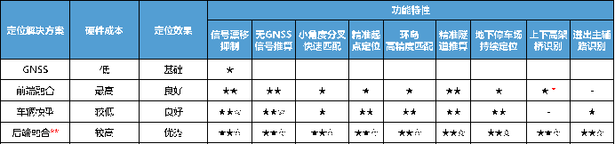 在实际车机导航项目中,传感器配置不同,又会衍生出不同的定位方案,如下表所示。