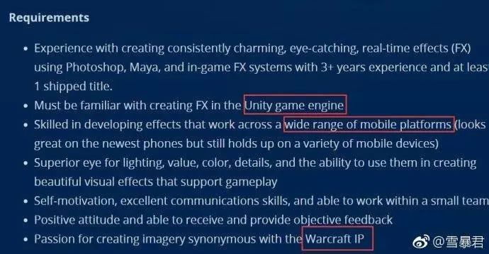 以上招聘信息的截图来自微博@雪暴君,其中部分可能因为招到了相关人员,已经从暴雪官网撤下
