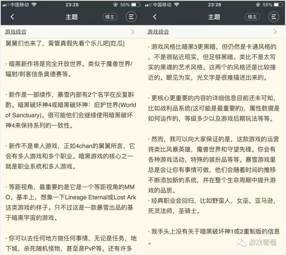根据高盛的一些爆料,暗黑相关的新作中可能包括第4代,前两代的重置,还有可能推出这一IP的手游。